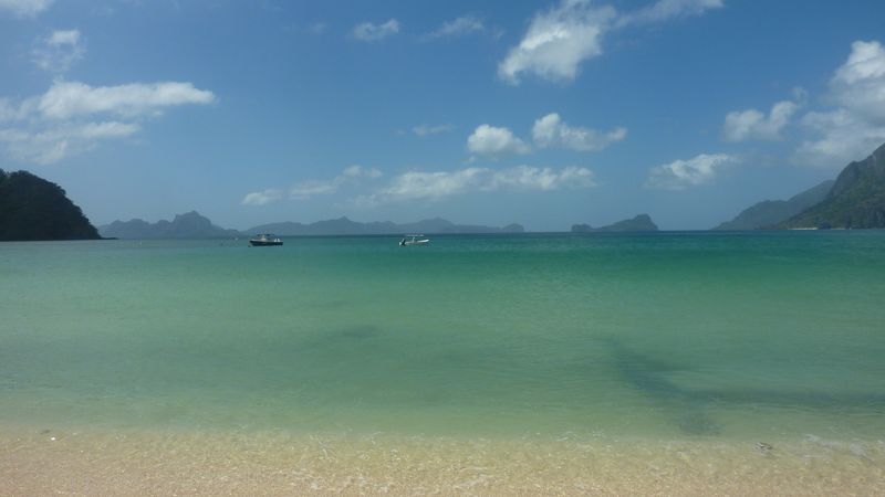 Quel programme aujourd'hui? C'est notre dernier jour ensemble et on doit repartir cet aprem à 16h à Puerto Princesa. On se ferait bien une balade en bateau. A priori il y a de belles îles à voir, des poissons et des tortues aussi. Mais bon, la plupart des bateaux est déjà partie bien plus tôt. Mais rien de plus simple à organiser, même à 9h30. On parle de notre projet à une jeune fille sur la plage. Elle nous propose un tour privé avec un local. Le temps qu'on aille au magasin faire quelques provisions, elle nous a en fait trouvé un petit groupe auquel on peut se joindre. Mais on n'a pas assez d'argent sur nous pour payer le bateau. Pas grave, la fille nous dit de partir et qu'on payera au retour; cool non? A 10h nous voilà parties. Trop facile !